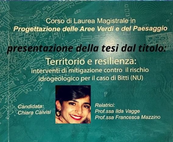 BITTI > Con la tesi “Territorio e Resilienza: interventi di mitigazione contro il rischio idrogeologico per il caso di Bitti”,  Chiara Calvisi, di Bitti, si è aggiudicata il “Premio tesi di laurea”.